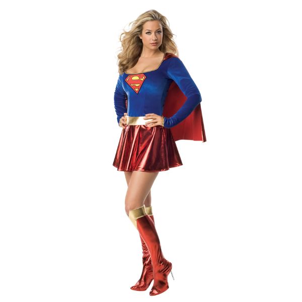 El conjunto reproduce el look clásico de Supergirl, con los colores característicos azul, rojo y amarillo y el emblemático símbolo de la heroína. Su diseño ajustado y cómodo permite moverse con facilidad, convirtiéndolo en una elección ideal para fiestas temáticas, Halloween, eventos de cómic o convenciones.