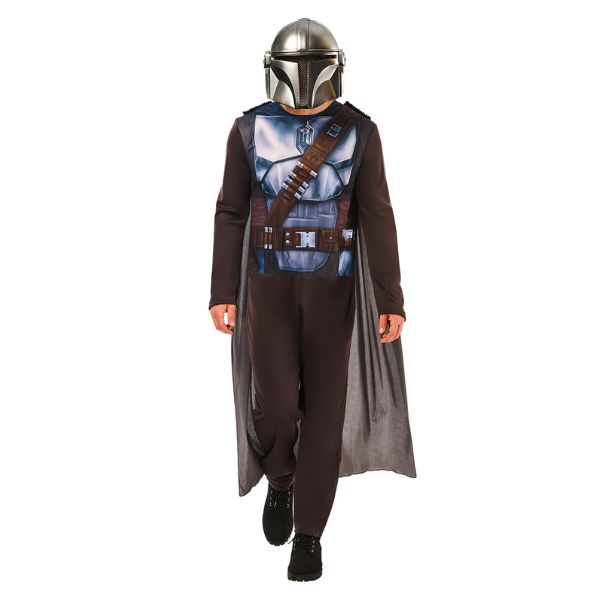 El conjunto incluye jumpsuit con detalles impresos, que recrean la armadura del personaje, además de capa y máscara, logrando un outfit completo y fácil de llevar. Su diseño cómodo permite moverse con libertad mientras mantienes la estética icónica del Mandaloriano.