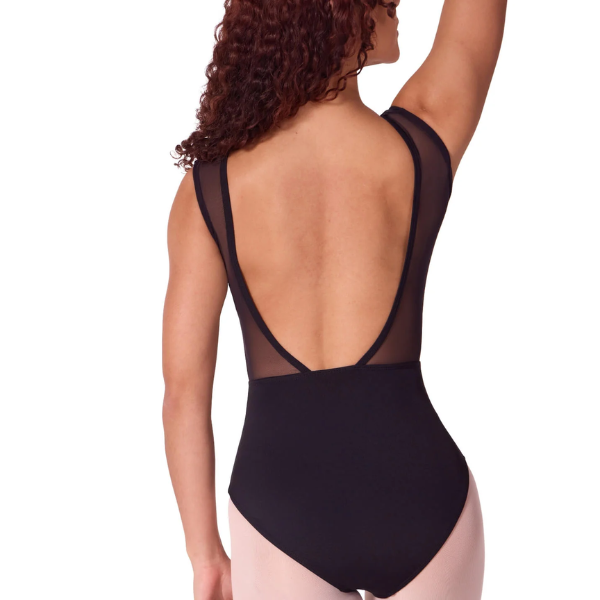 La espalda con escote profundo en V y cuerpo de malla añade sensualidad y libertad de movimiento, convirtiéndolo en una prenda versátil y cómoda. Confeccionado en tejidos elásticos y transpirables, se adapta al cuerpo con suavidad, permitiendo una total libertad al bailar.