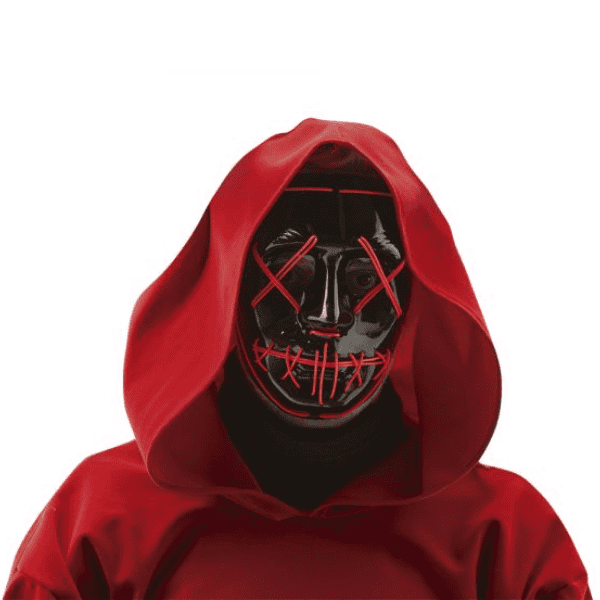 Con la máscara Maniaco con luz, serás el centro de atención en cualquier fiesta. Sus luces integradas realzan el efecto terrorífico, aportando un toque moderno y espeluznante a tu disfraz de Halloween.